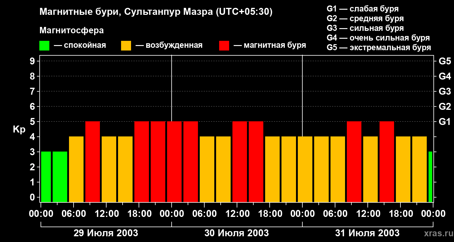 Магнитные бури в Сультанпур Мазре 31 июля 2003 года