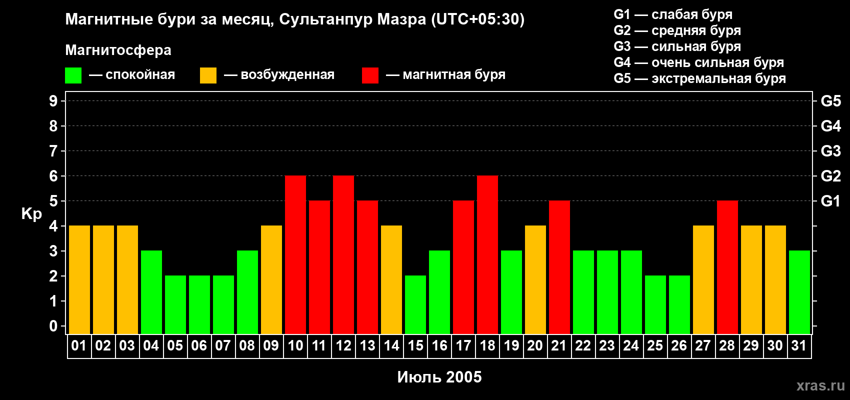 Магнитные бури в Сультанпур Мазре — 31 июля 2005 года