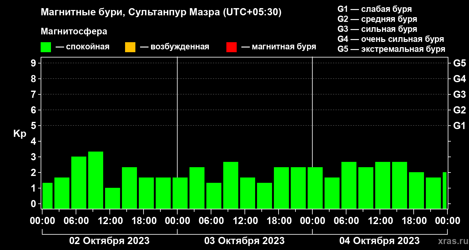 Магнитные бури в Сультанпур Мазре 4 октября 2023 года