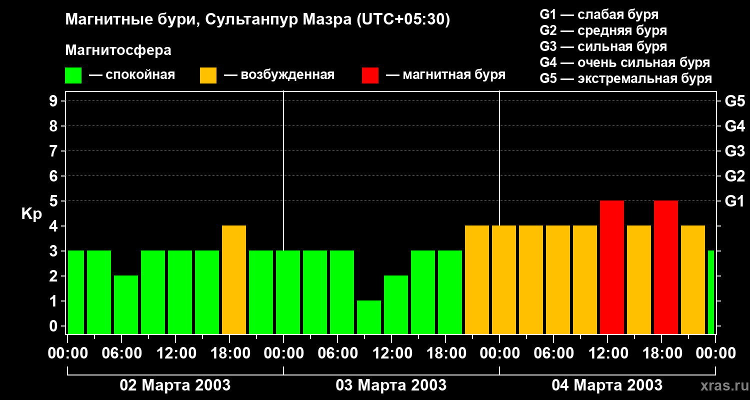 Магнитные бури в Сультанпур Мазре — 4 марта 2003 года