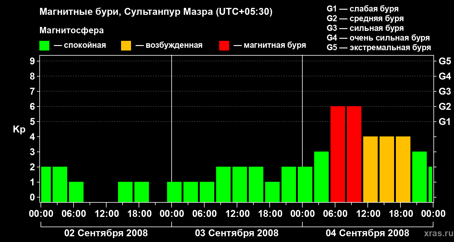 Магнитные бури в Сультанпур Мазре 4 сентября 2008 года