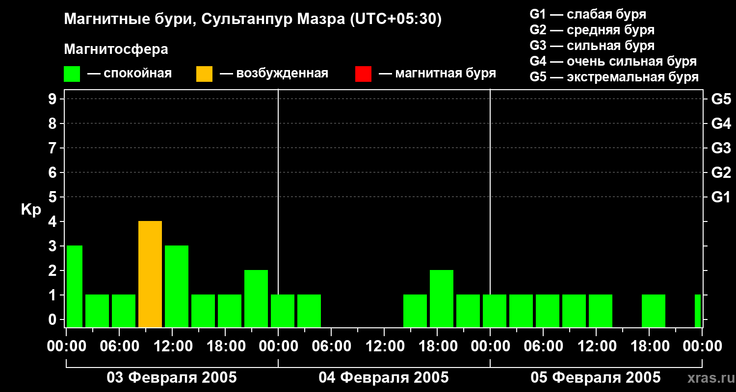 Магнитные бури в Сультанпур Мазре — 5 февраля 2005 года