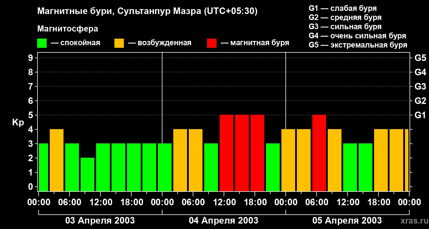 Магнитные бури в Сультанпур Мазре 5 апреля 2003 года