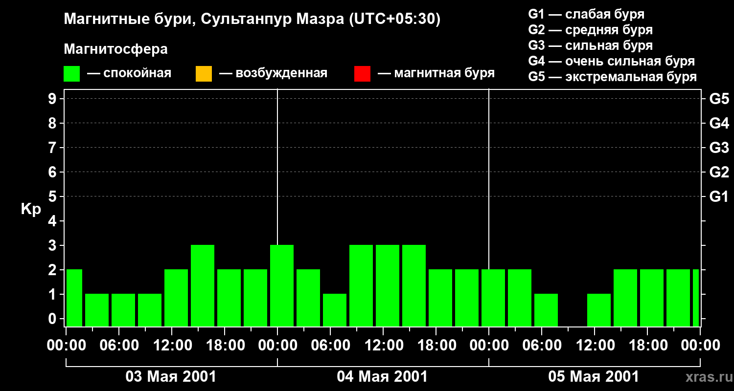 Магнитные бури в Сультанпур Мазре 5 мая 2001 года