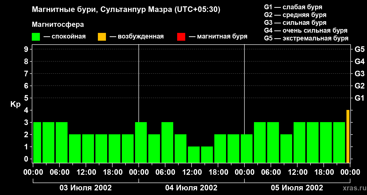 Магнитные бури в Сультанпур Мазре — 5 июля 2002 года