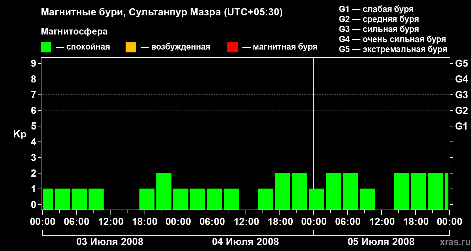 Магнитные бури в Сультанпур Мазре — 5 июля 2008 года
