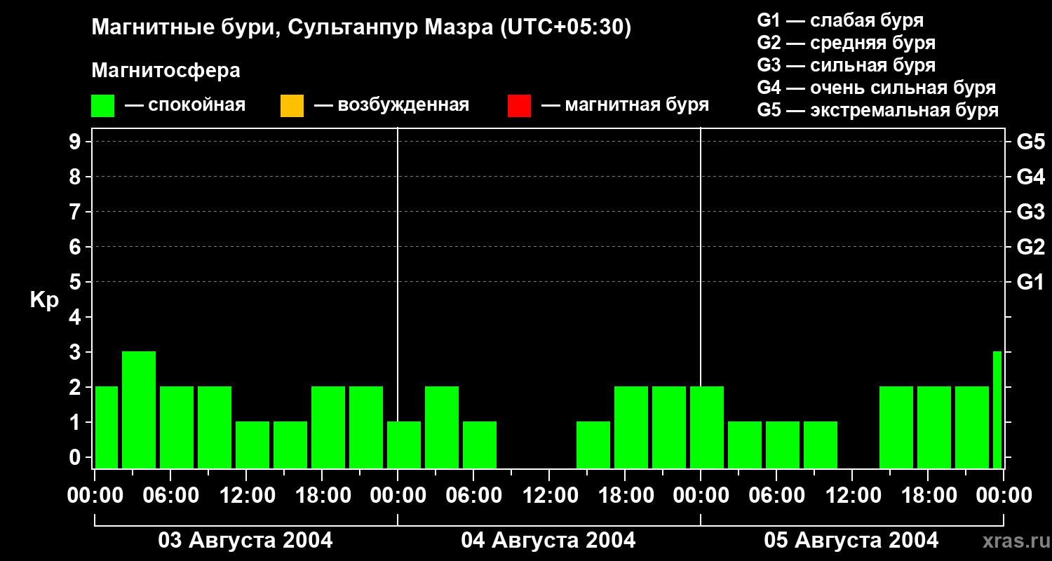 Магнитные бури в Сультанпур Мазре 5 августа 2004 года