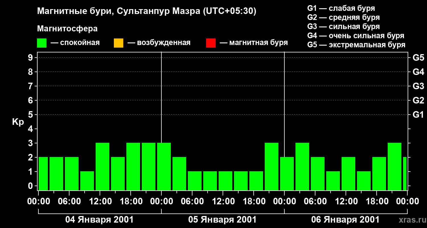 Магнитные бури в Сультанпур Мазре 6 января 2001 года