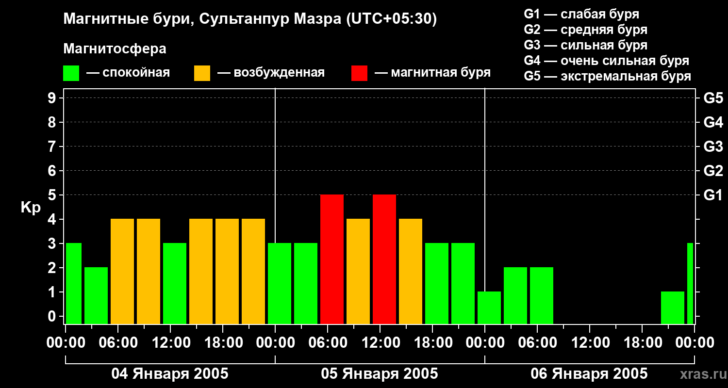 Магнитные бури в Сультанпур Мазре — 6 января 2005 года