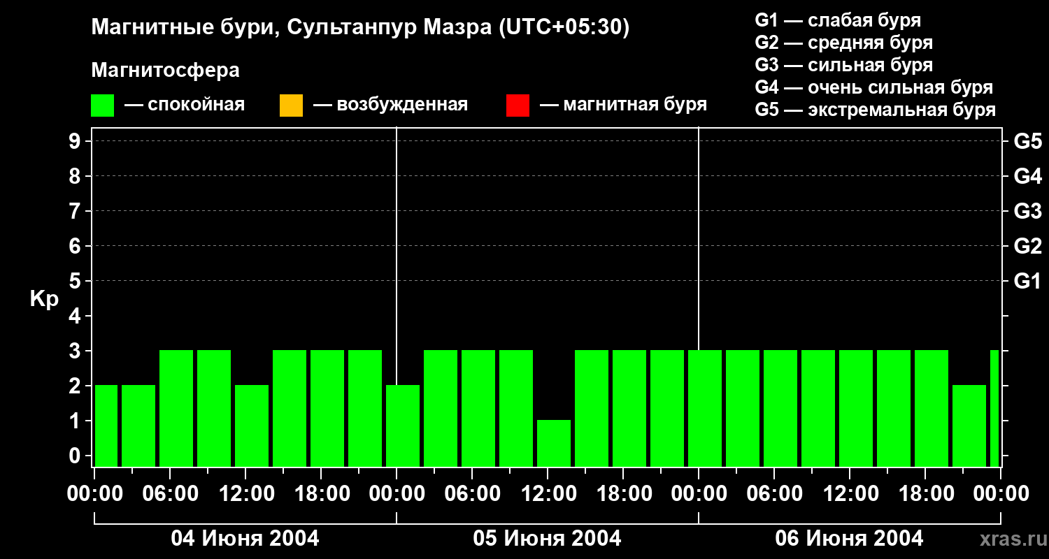 Магнитные бури в Сультанпур Мазре 6 июня 2004 года