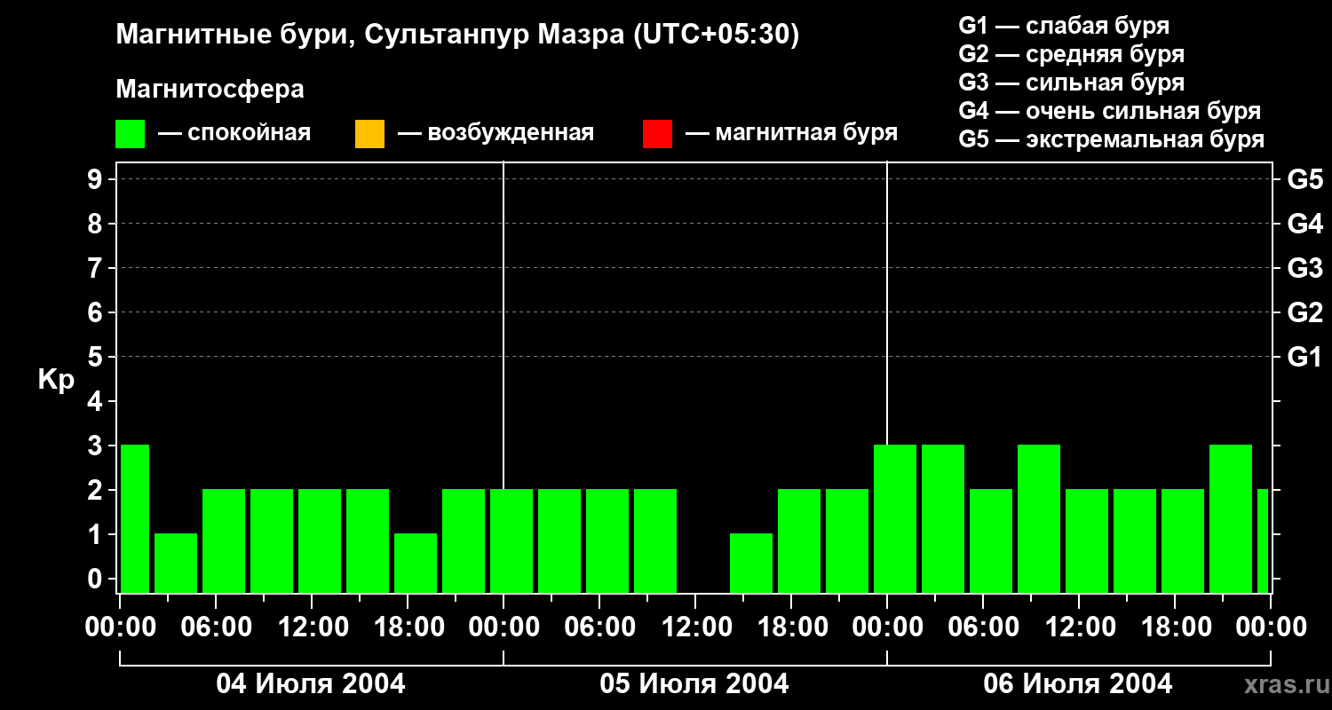 Магнитные бури в Сультанпур Мазре 6 июля 2004 года