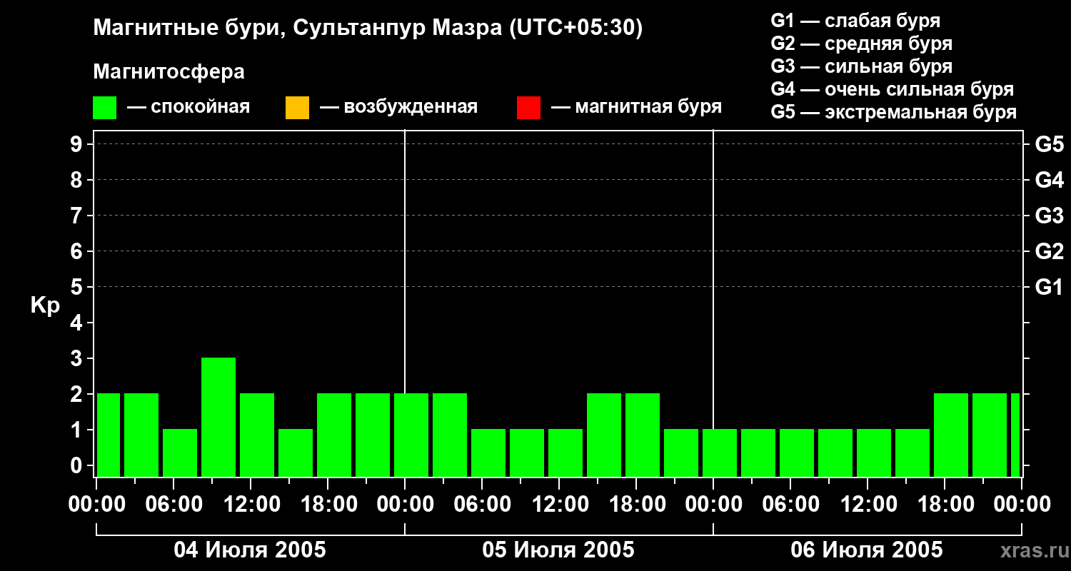 Магнитные бури в Сультанпур Мазре — 6 июля 2005 года