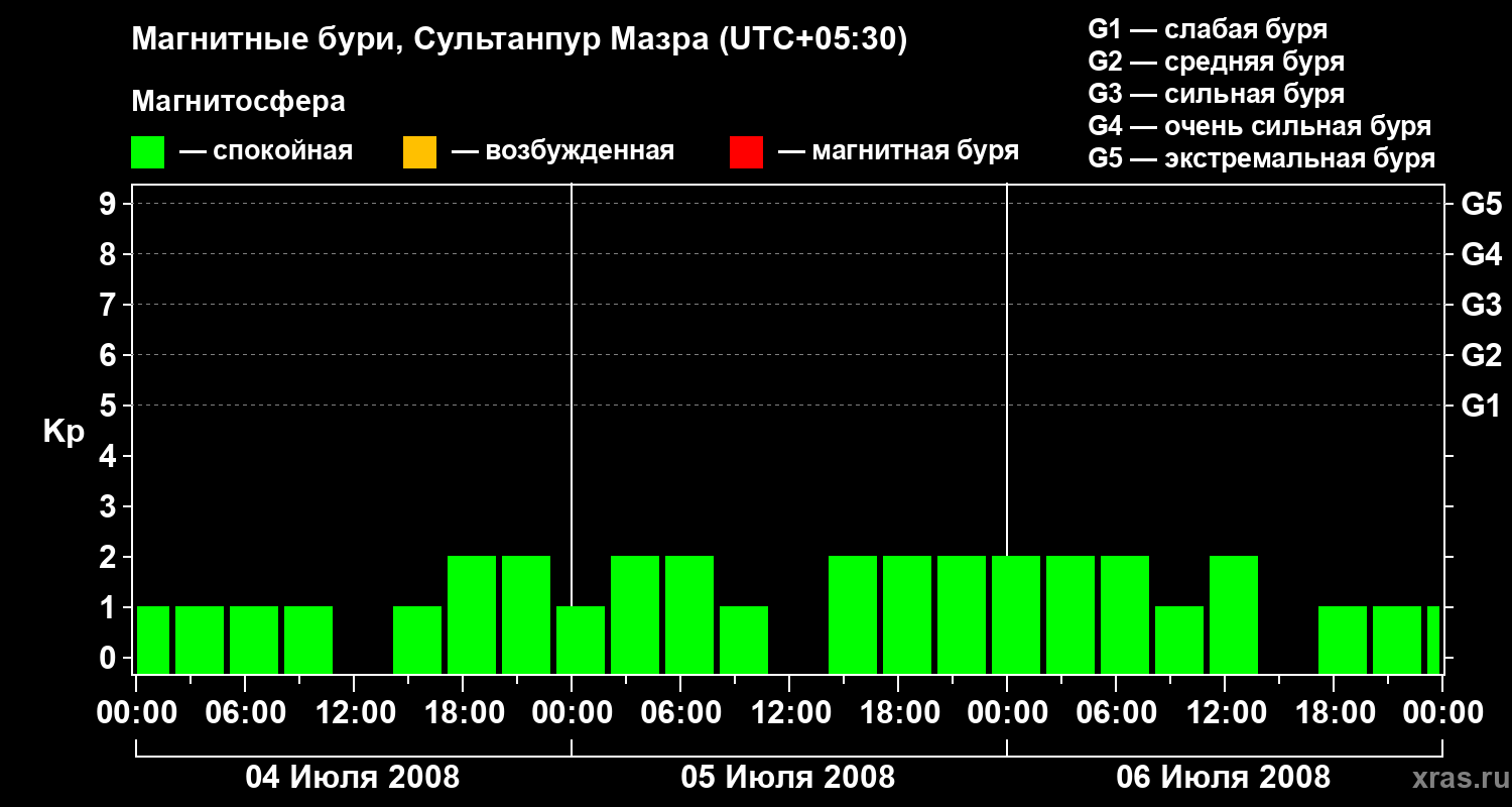 Магнитные бури в Сультанпур Мазре 6 июля 2008 года