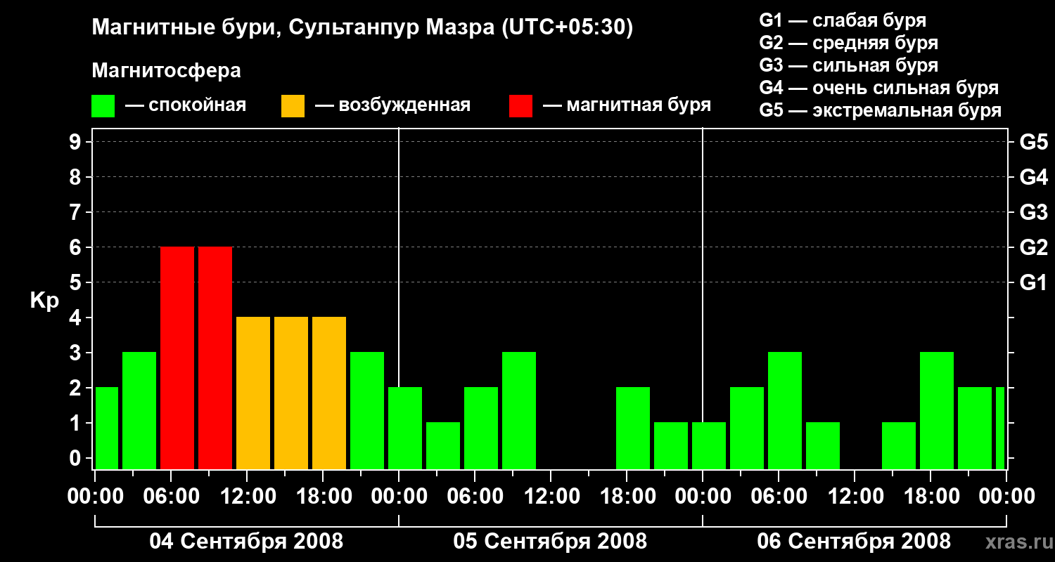 Магнитные бури в Сультанпур Мазре 6 сентября 2008 года