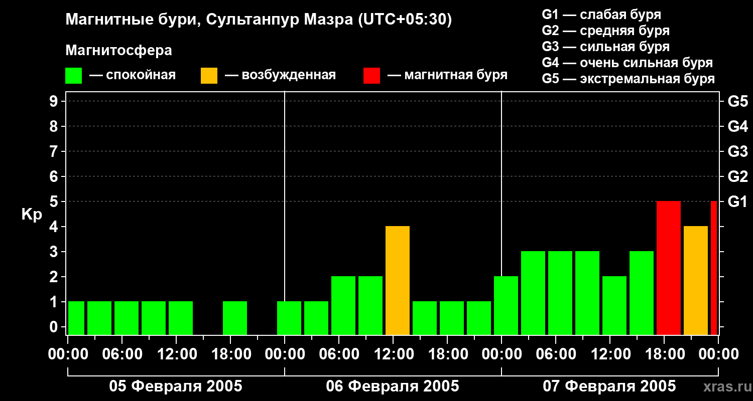 Магнитные бури в Сультанпур Мазре — 7 февраля 2005 года