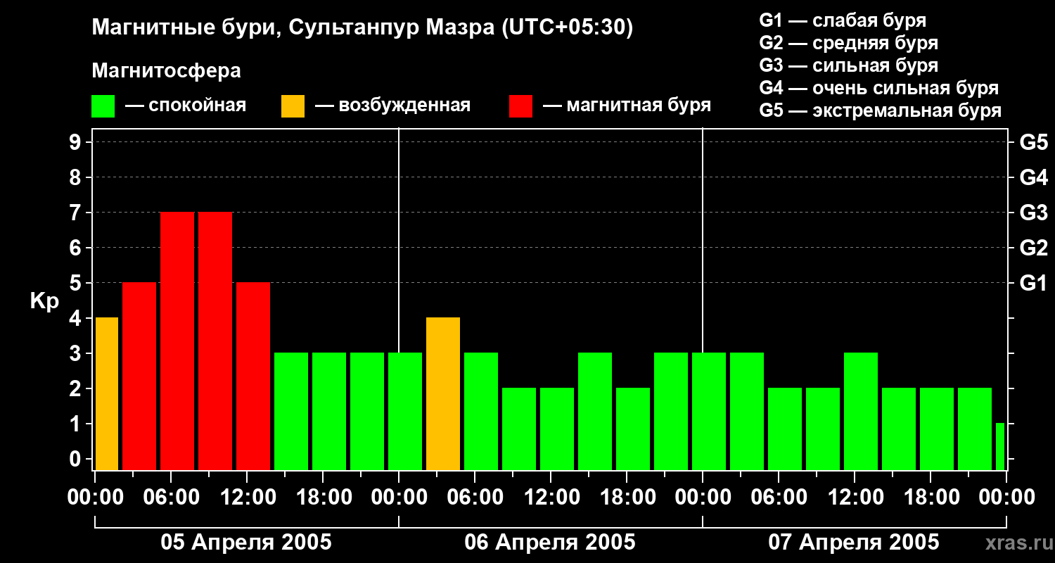 Магнитные бури в Сультанпур Мазре — 7 апреля 2005 года