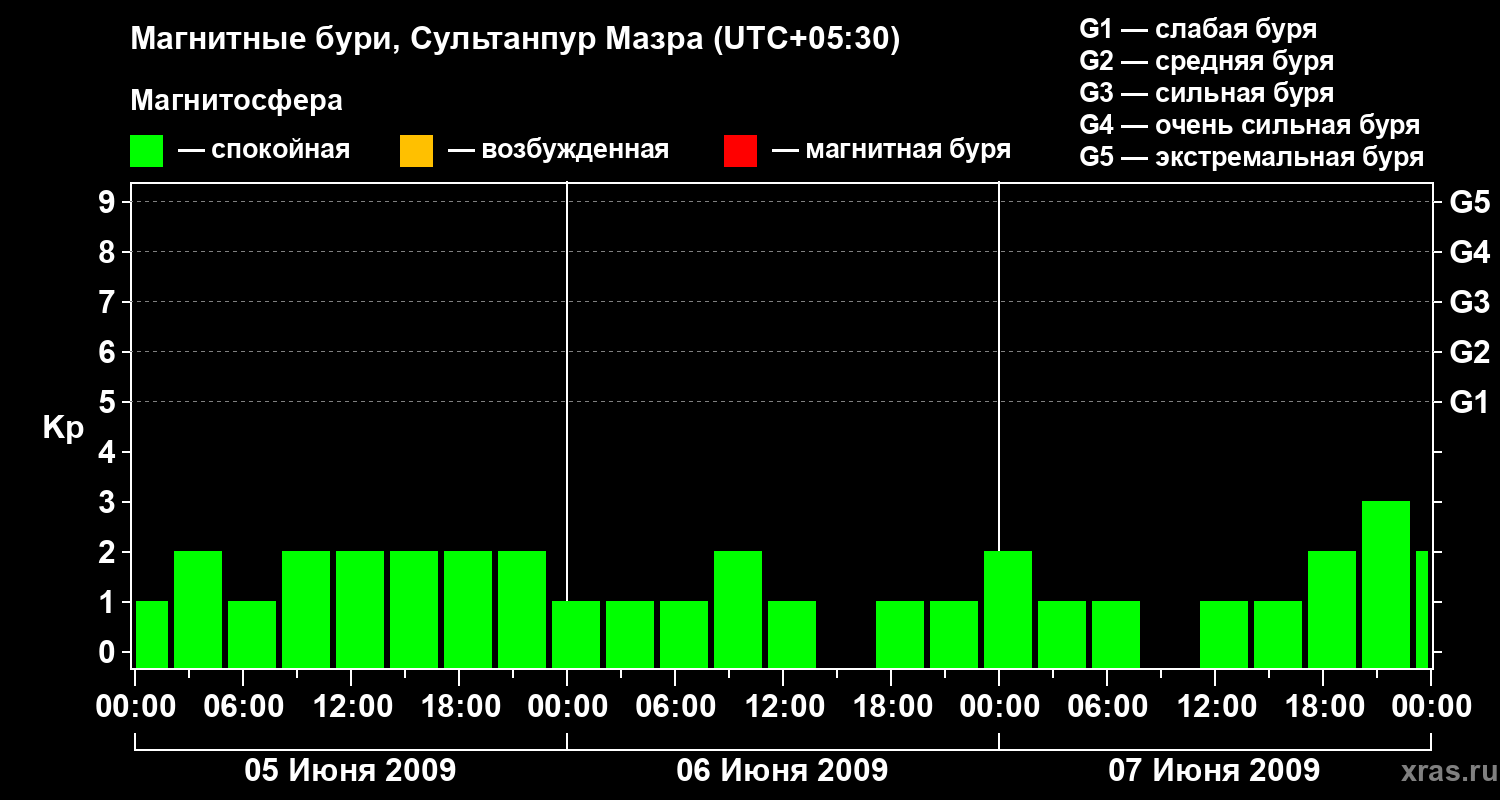 Магнитные бури в Сультанпур Мазре 7 июня 2009 года