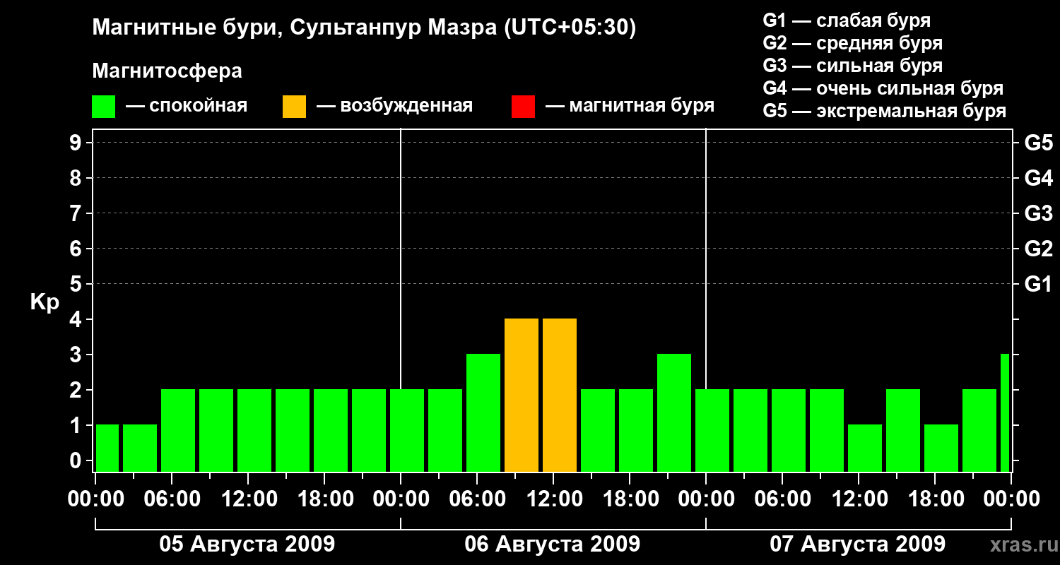 Магнитные бури в Сультанпур Мазре 7 августа 2009 года
