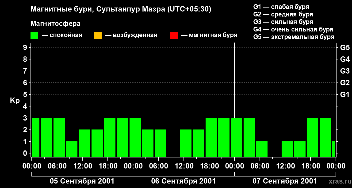 Магнитные бури в Сультанпур Мазре 7 сентября 2001 года