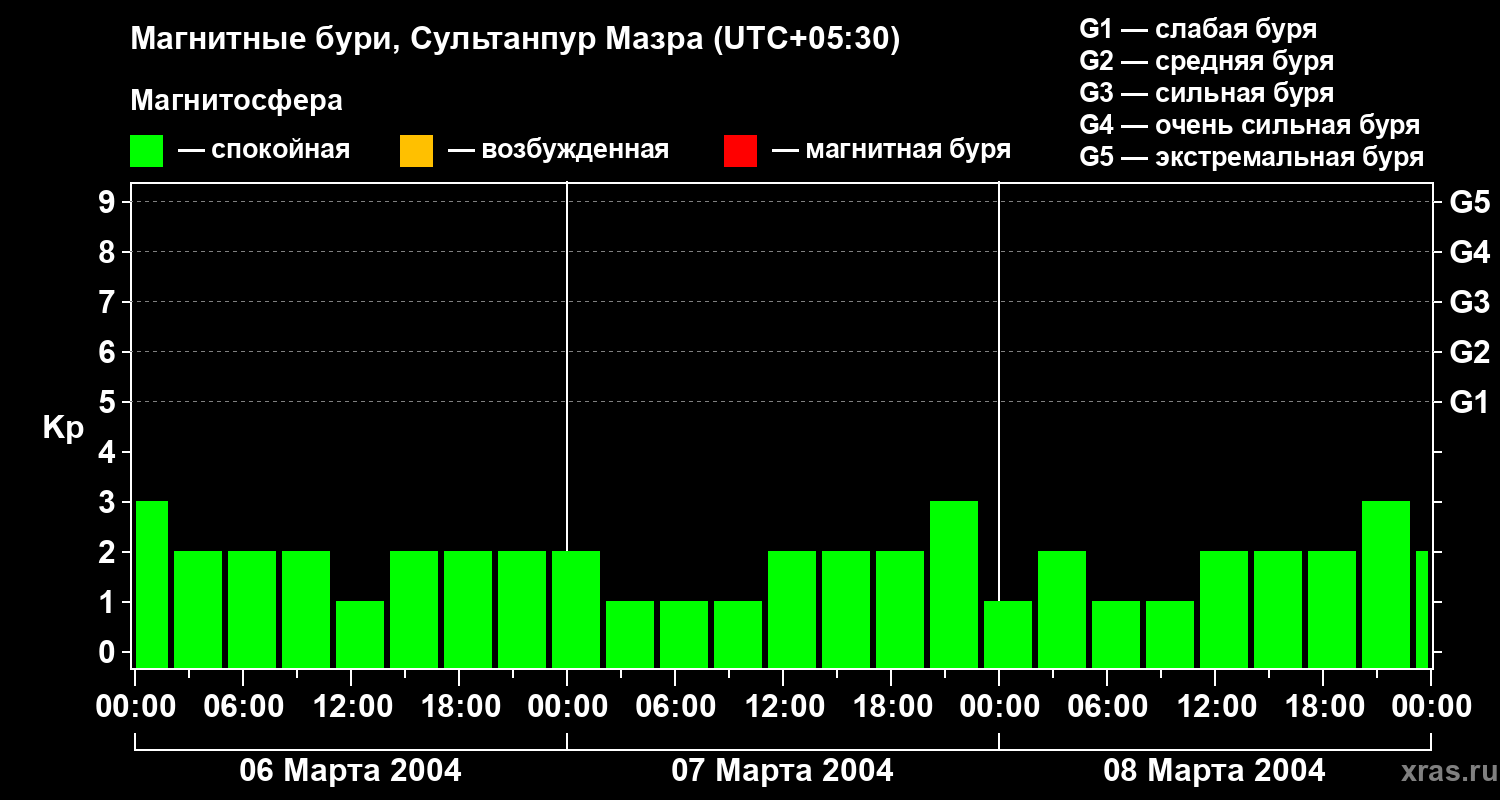 Магнитные бури в Сультанпур Мазре 8 марта 2004 года