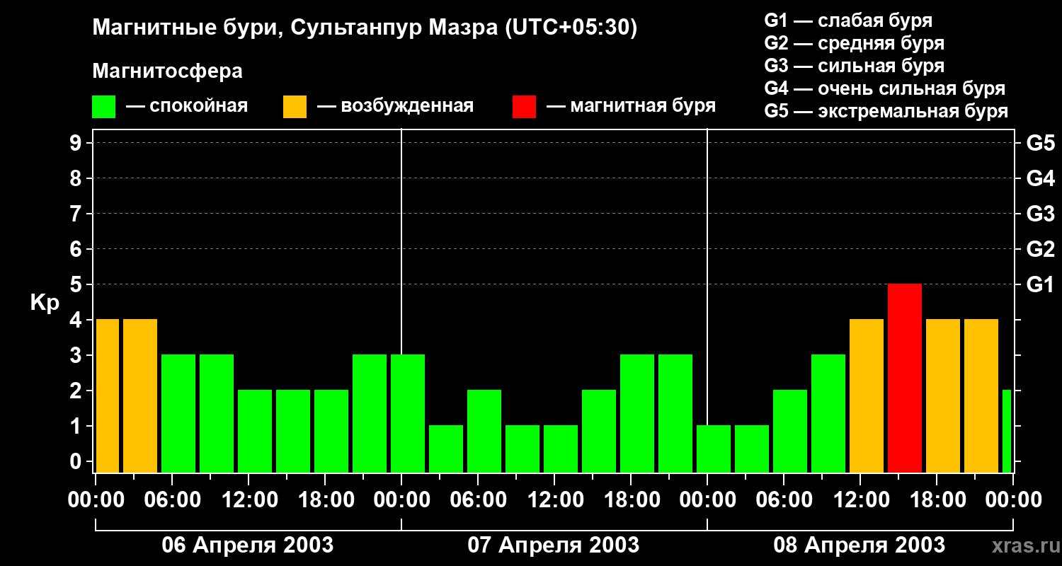 Магнитные бури в Сультанпур Мазре — 8 апреля 2003 года