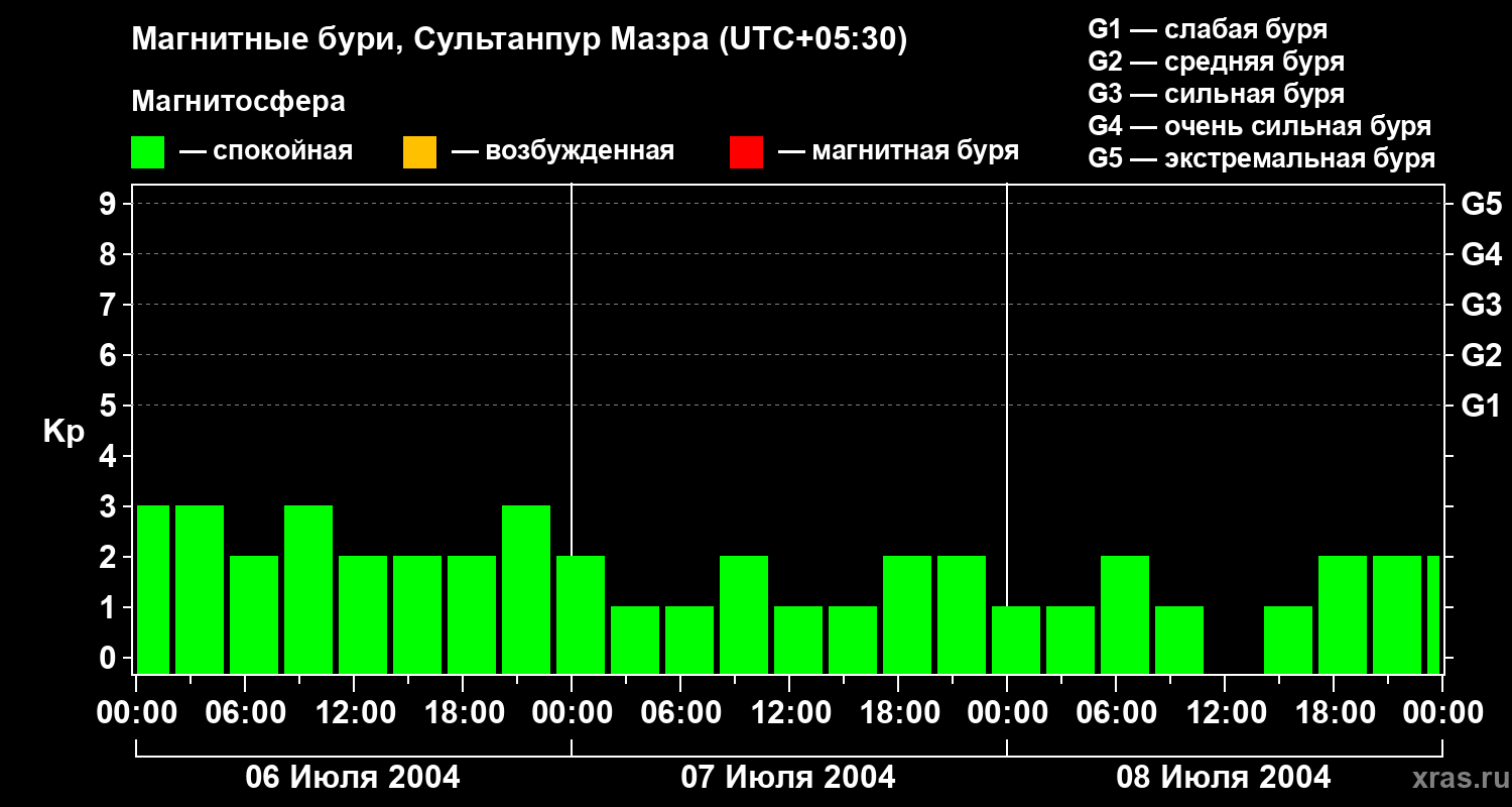 Магнитные бури в Сультанпур Мазре 8 июля 2004 года