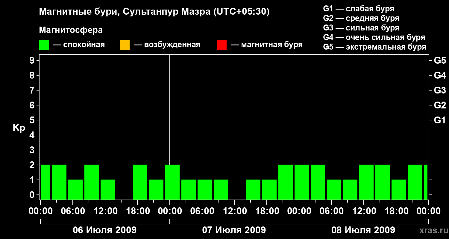 Магнитные бури в Сультанпур Мазре 8 июля 2009 года