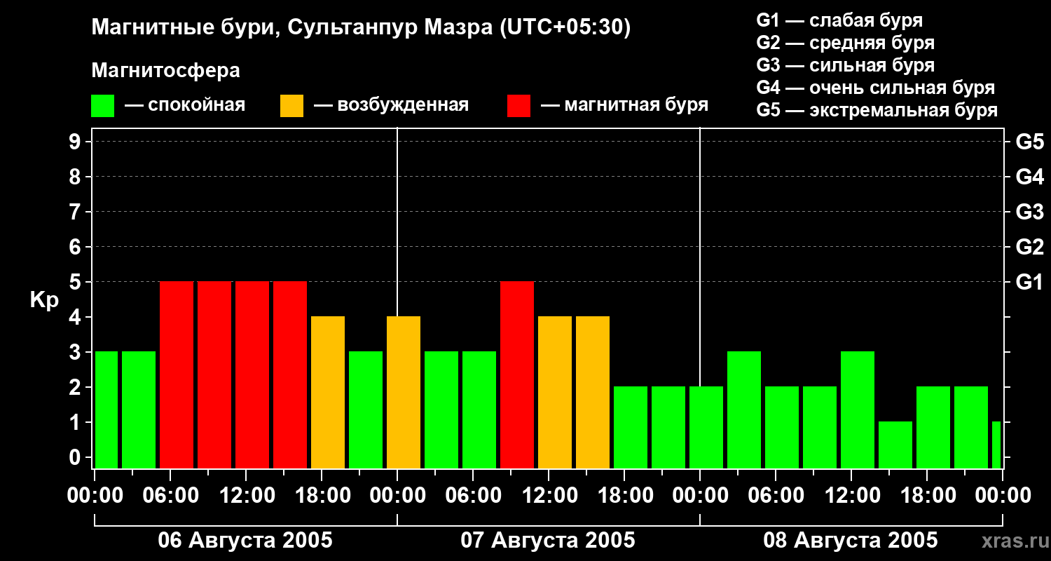 Магнитные бури в Сультанпур Мазре 8 августа 2005 года