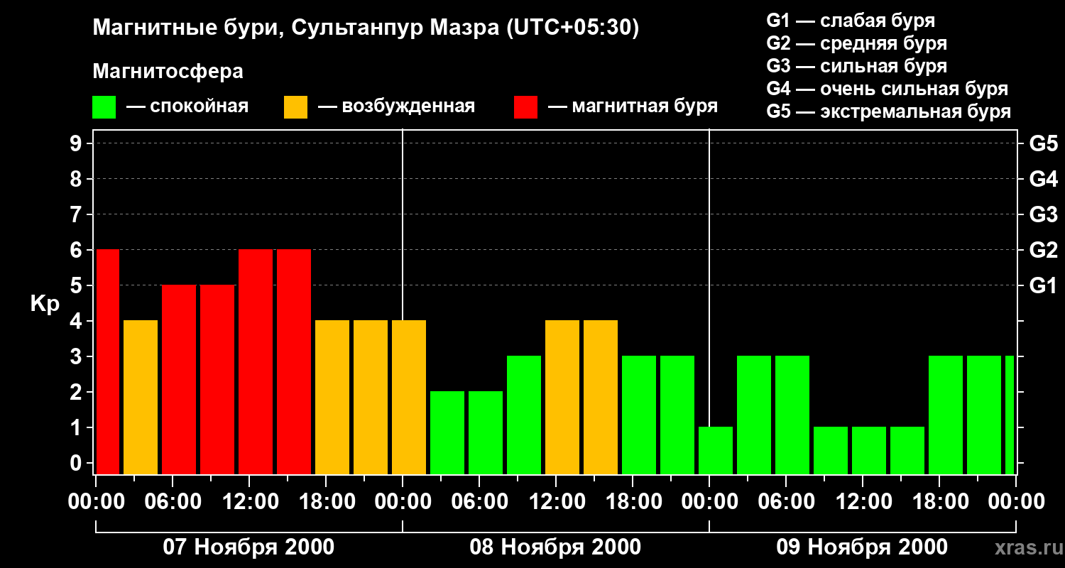 Магнитные бури в Сультанпур Мазре 9 ноября 2000 года