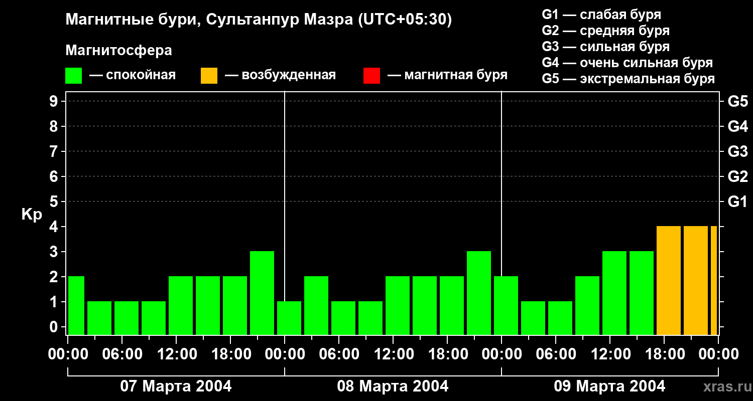 Магнитные бури в Сультанпур Мазре 9 марта 2004 года