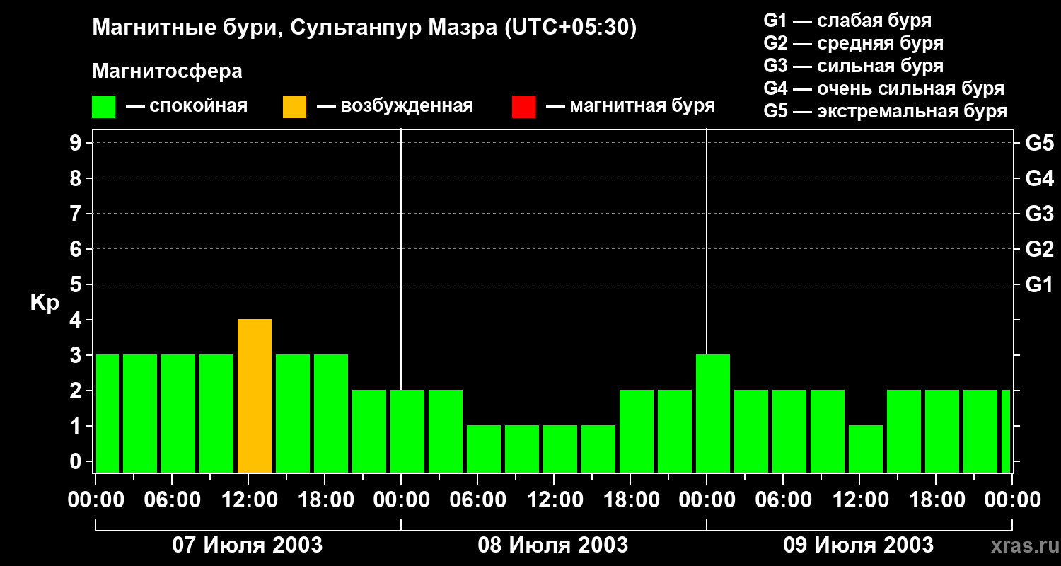 Магнитные бури в Сультанпур Мазре 9 июля 2003 года