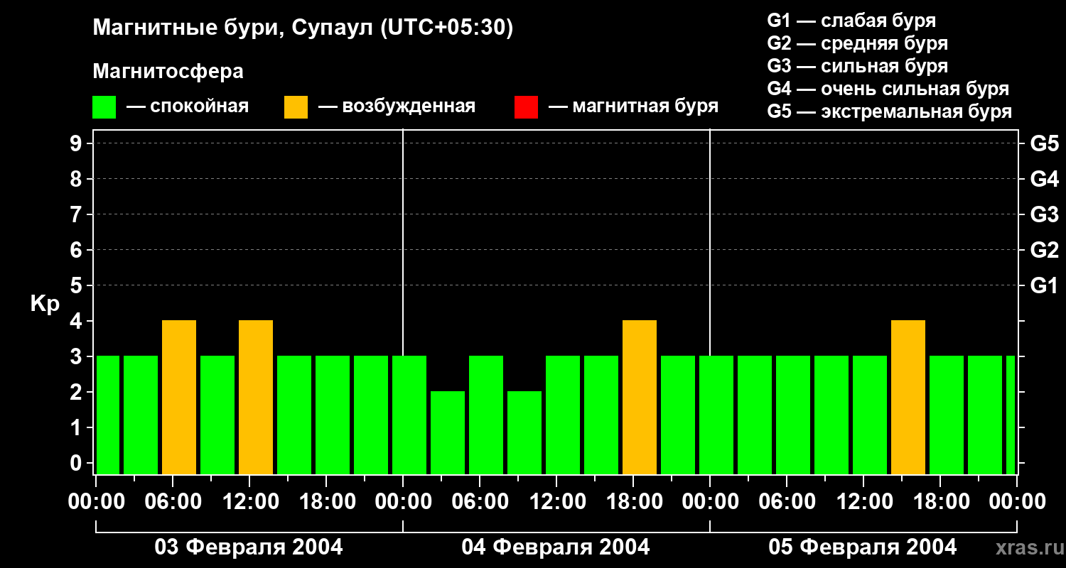 Магнитные бури в Супауле — 5 февраля 2004 года