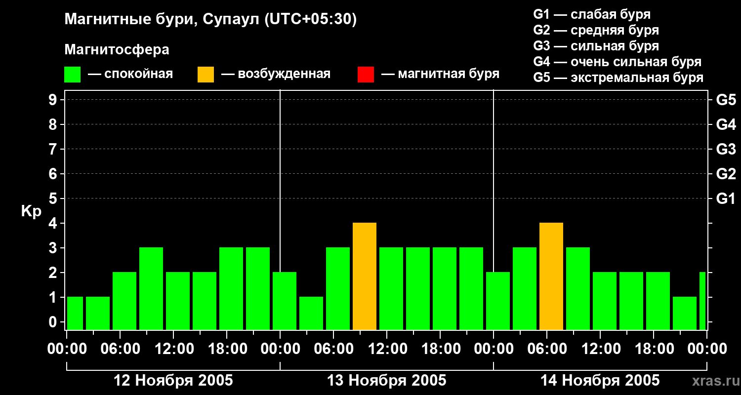 Магнитные бури в Супауле — 14 ноября 2005 года