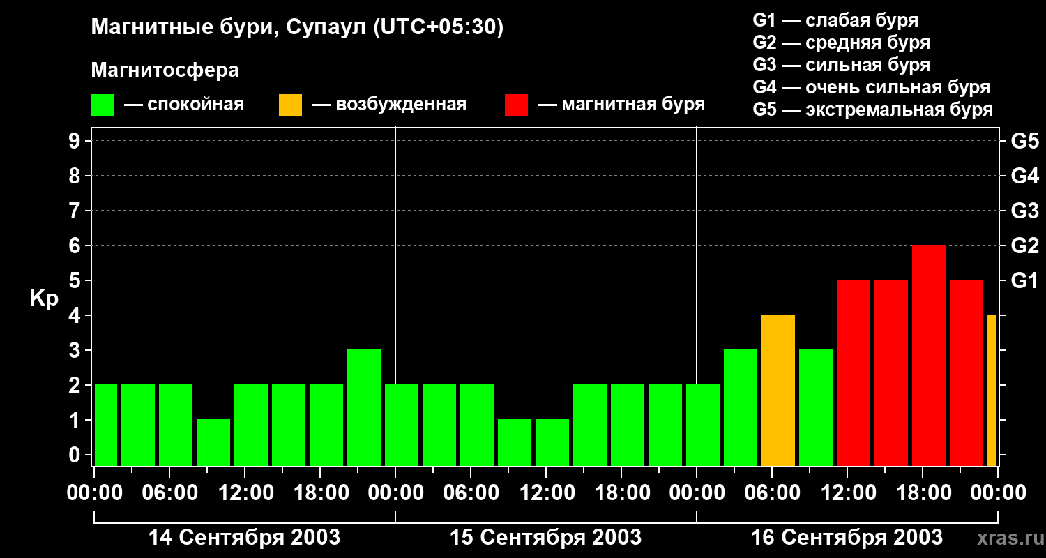 Магнитные бури в Супауле — 16 сентября 2003 года