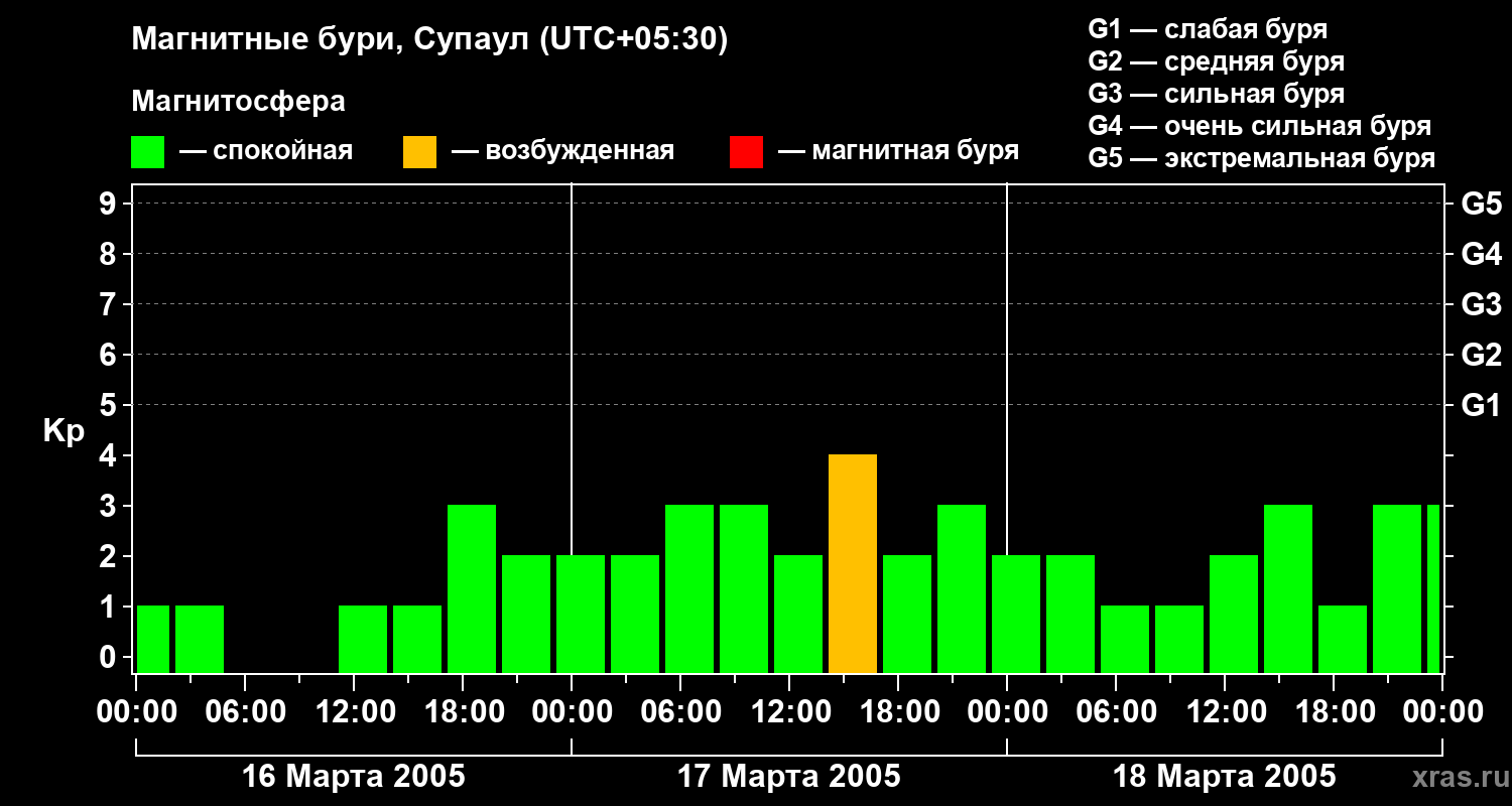 Магнитные бури в Супауле — 18 марта 2005 года