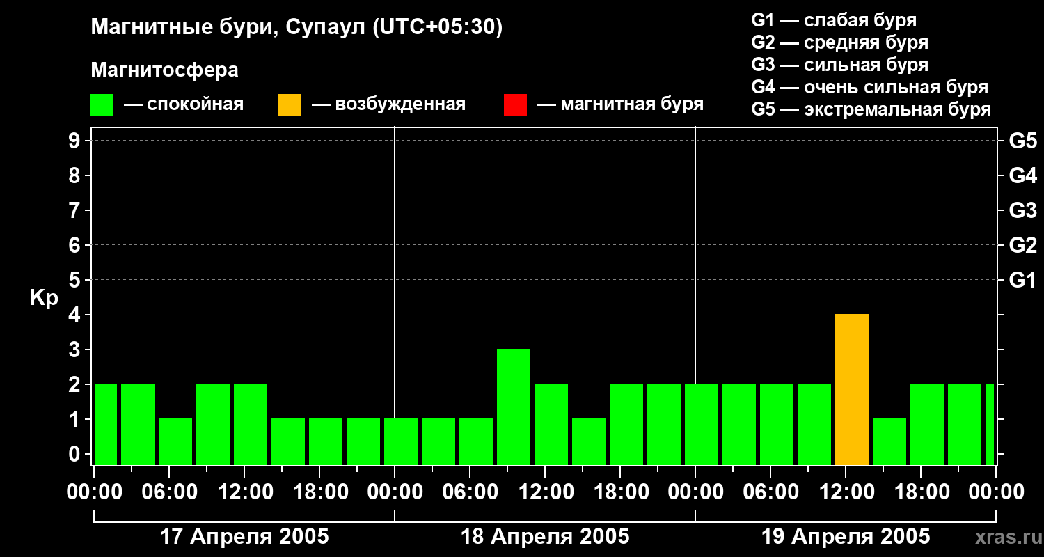 Магнитные бури в Супауле — 19 апреля 2005 года
