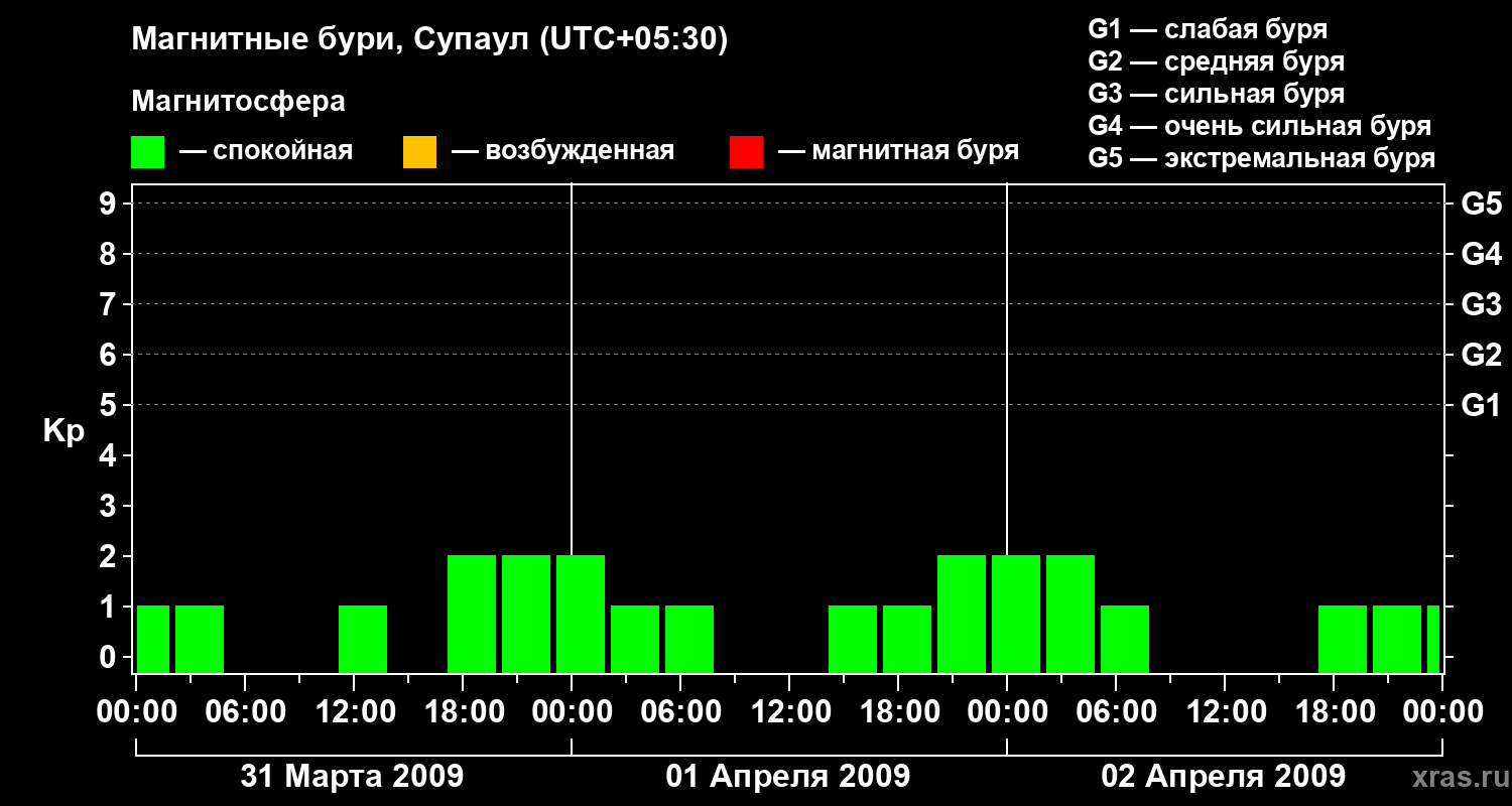 Магнитные бури в Супауле — 2 апреля 2009 года