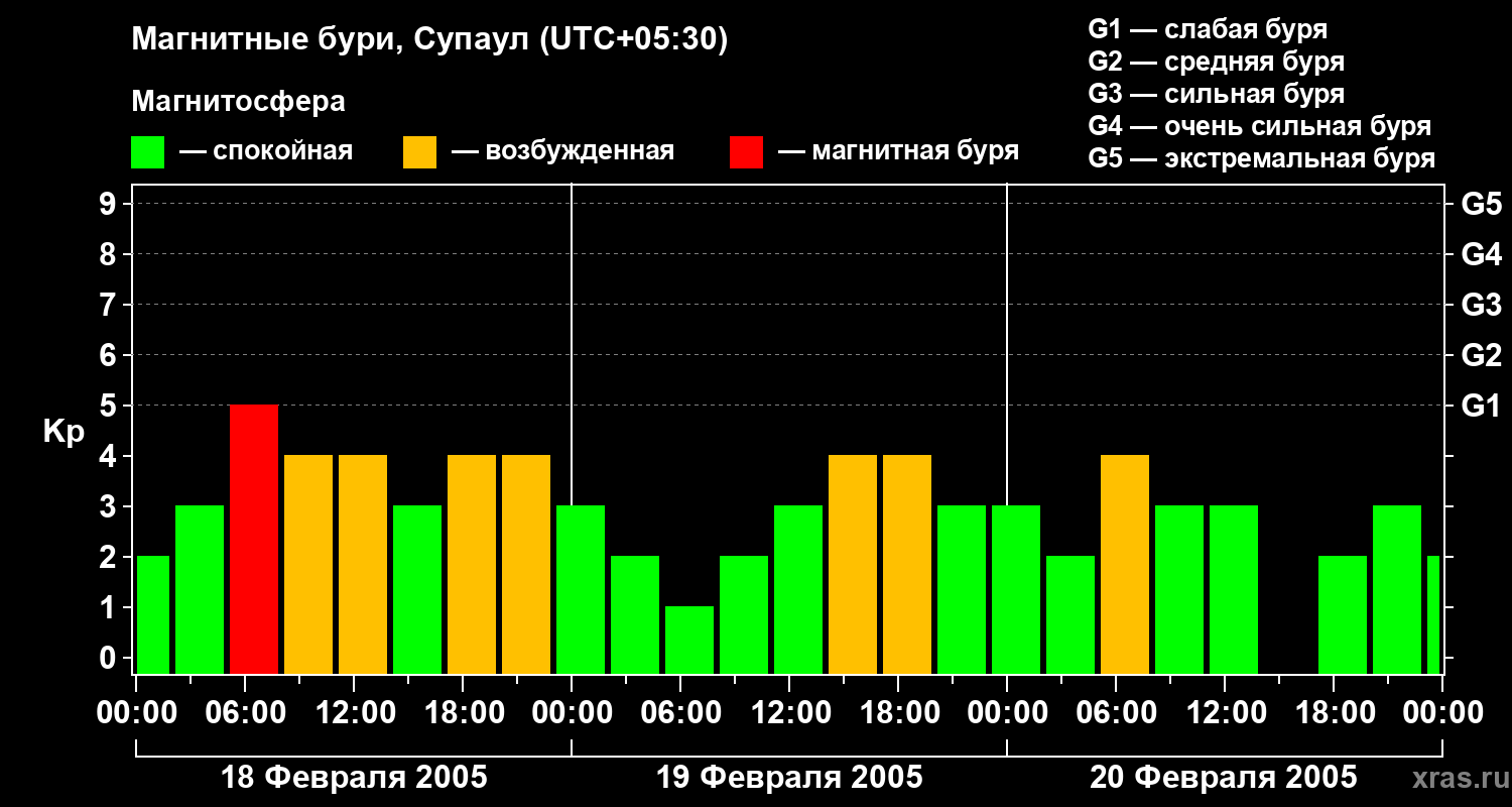 Магнитные бури в Супауле — 20 февраля 2005 года