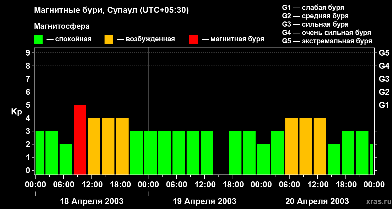 Магнитные бури в Супауле — 20 апреля 2003 года