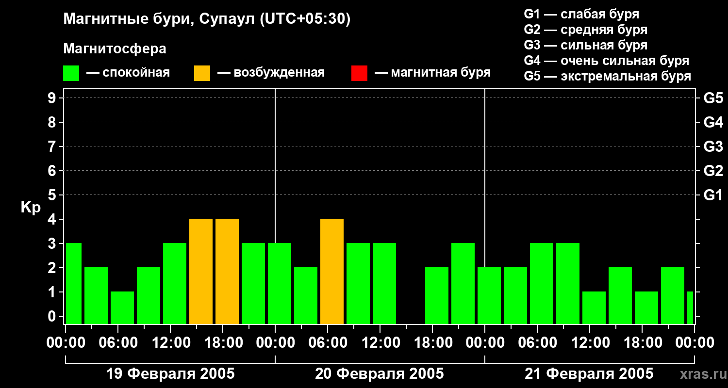 Магнитные бури в Супауле — 21 февраля 2005 года