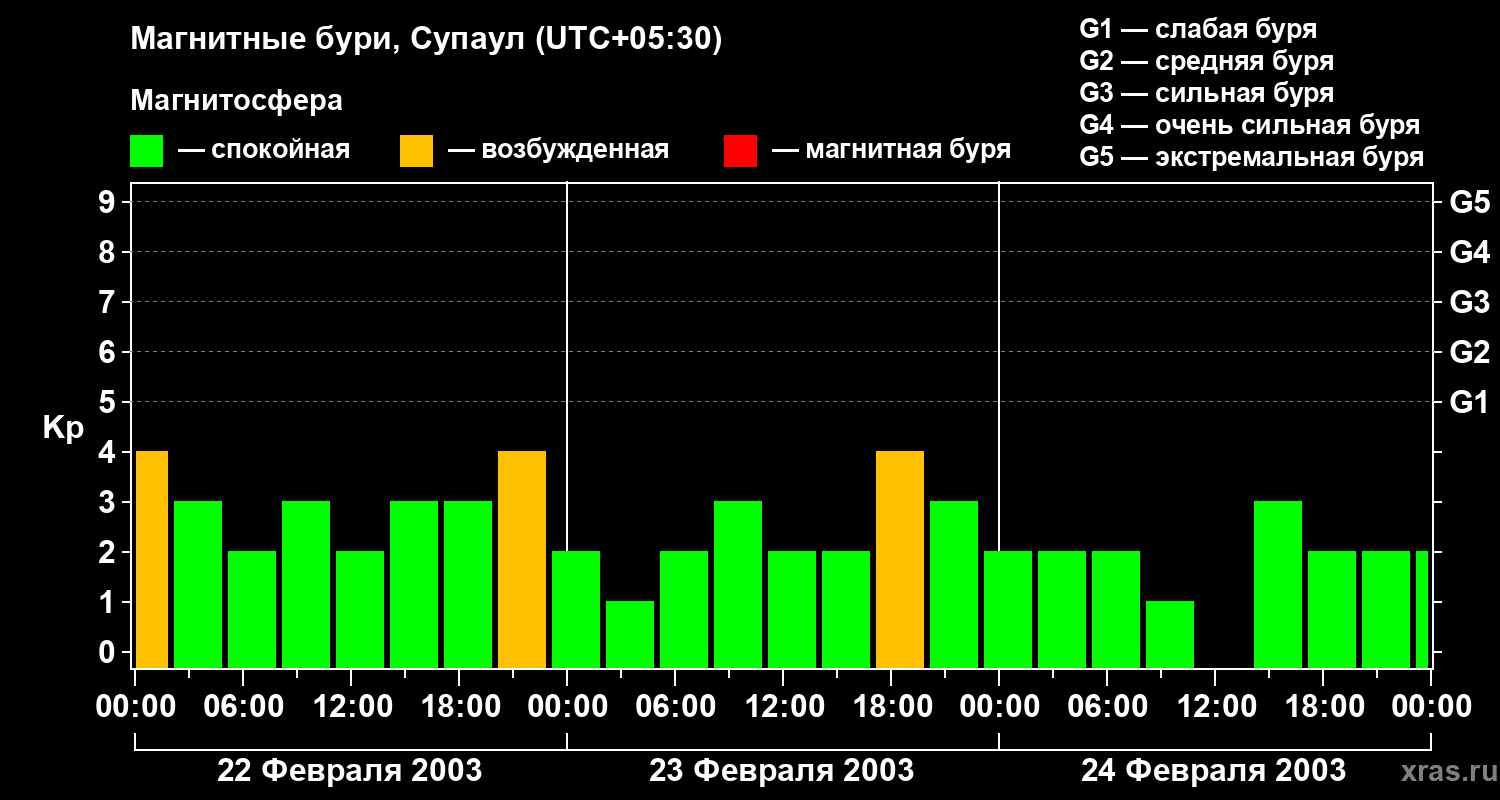 Магнитные бури в Супауле — 24 февраля 2003 года