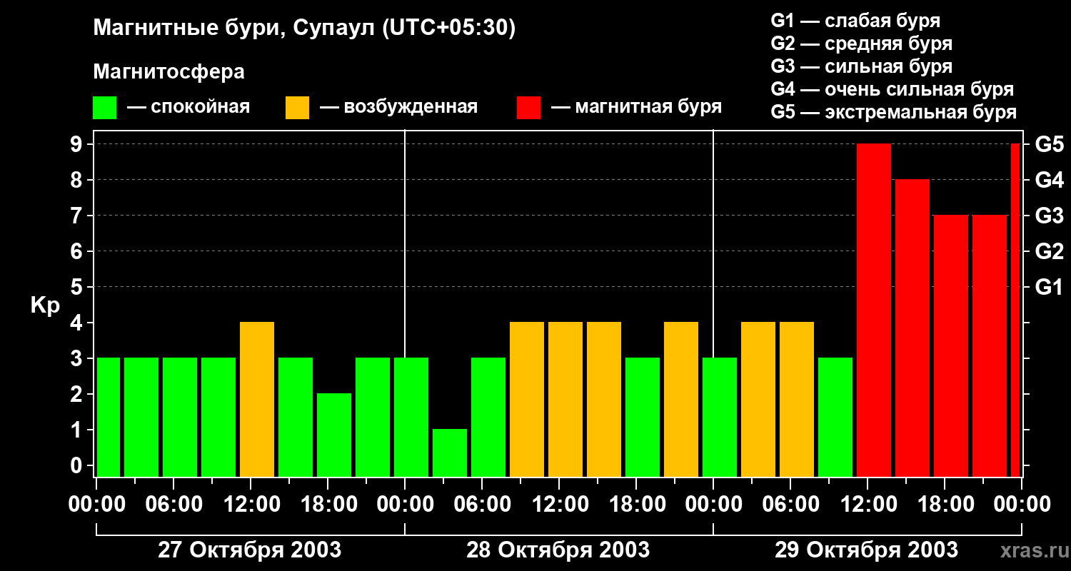 Магнитные бури в Супауле — 29 октября 2003 года