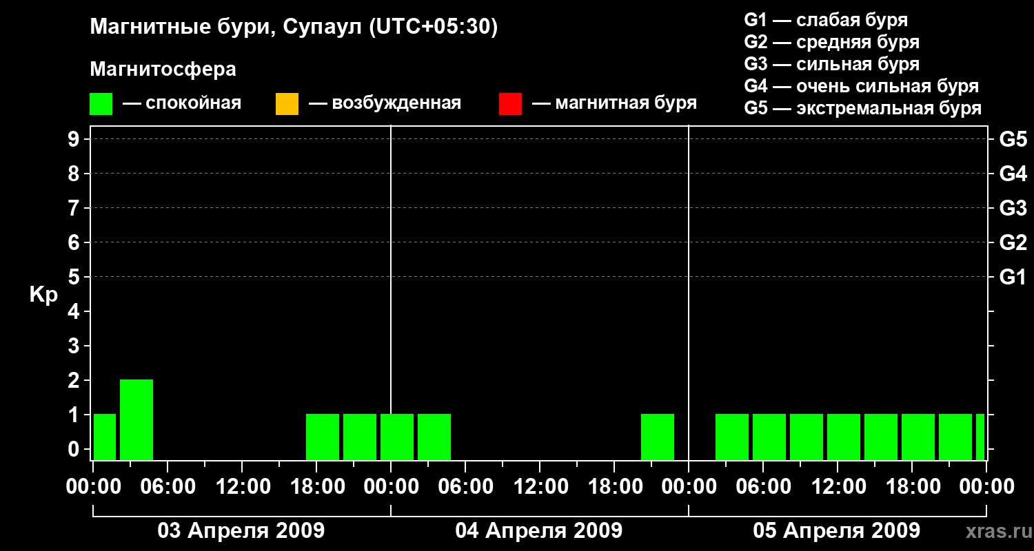 Магнитные бури в Супауле — 5 апреля 2009 года