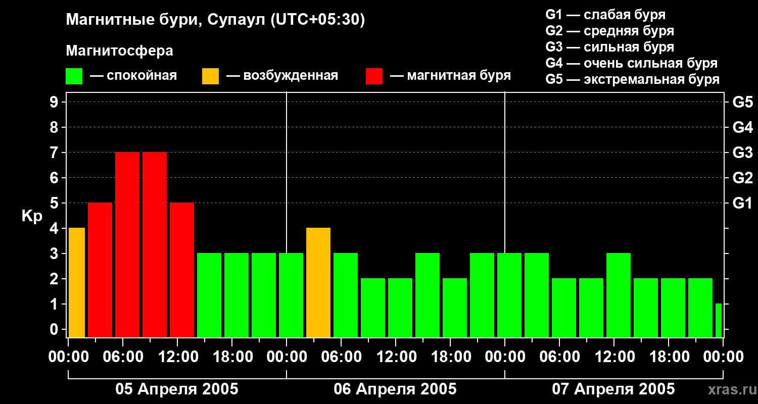 Магнитные бури в Супауле — 7 апреля 2005 года