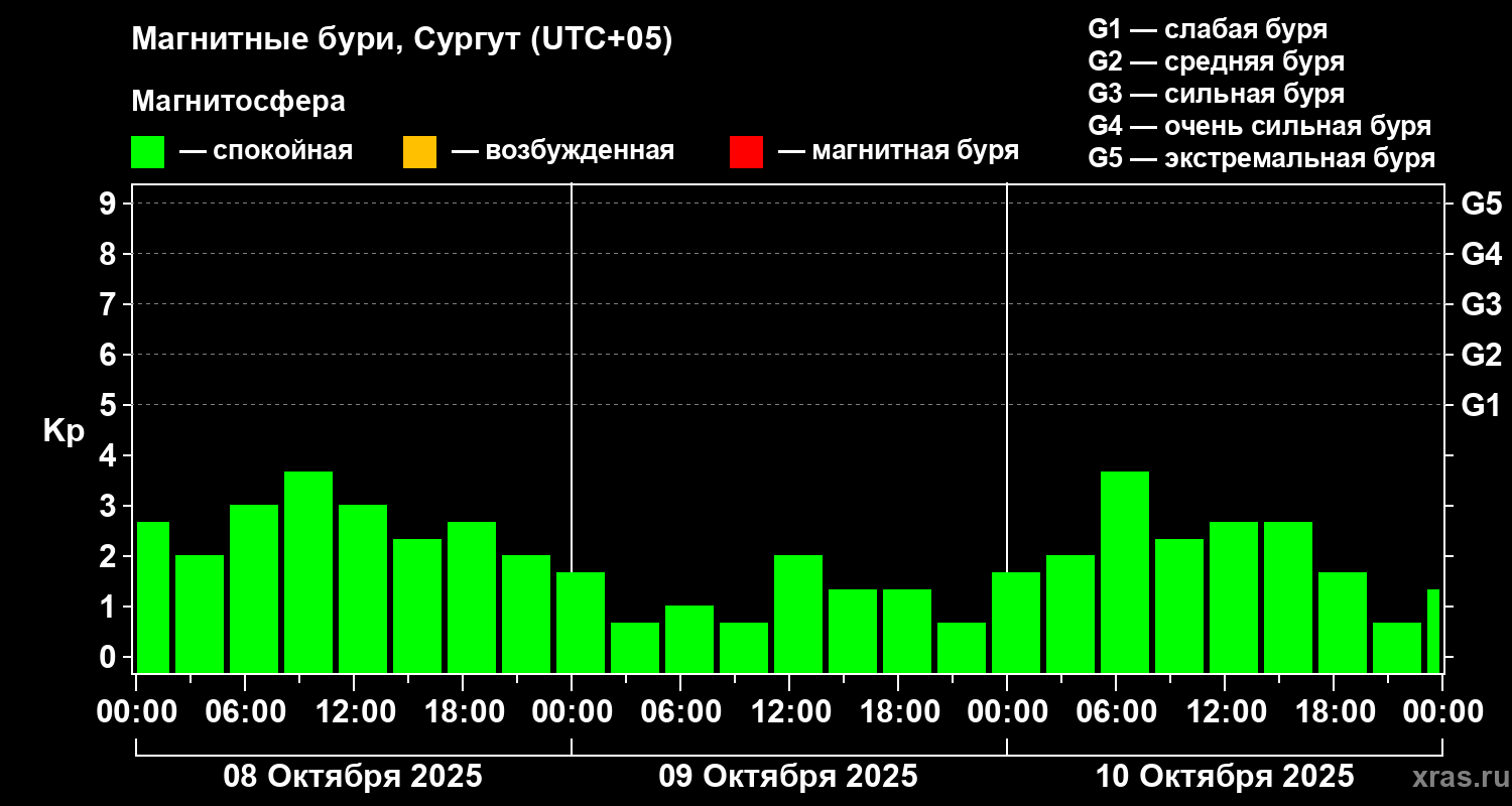 Магнитные бури в Сургуте — 10 октября 2025 года