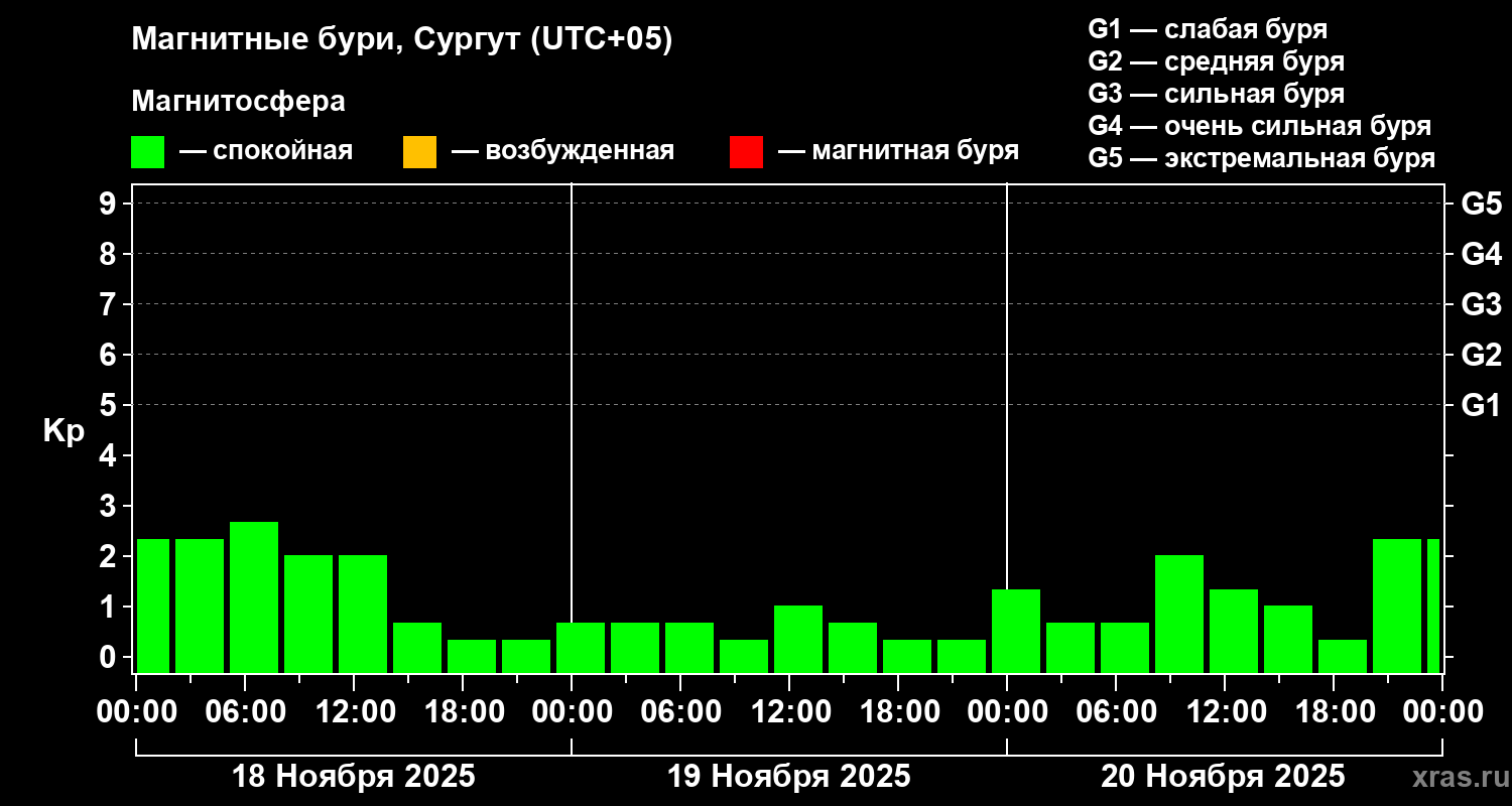 Магнитные бури в Сургуте — 20 ноября 2025 года