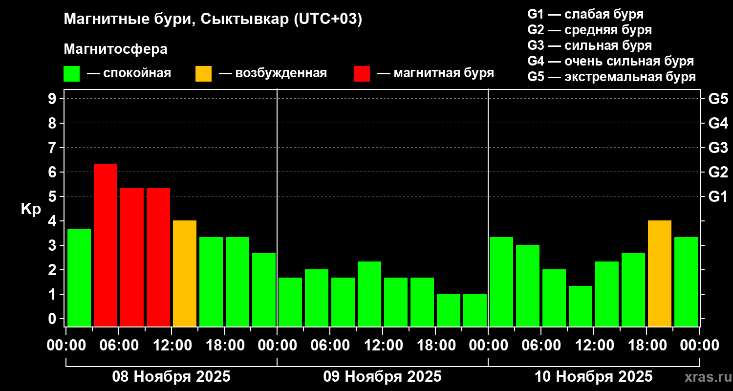 Магнитные бури в Сыктывкаре — 10 ноября 2025 года