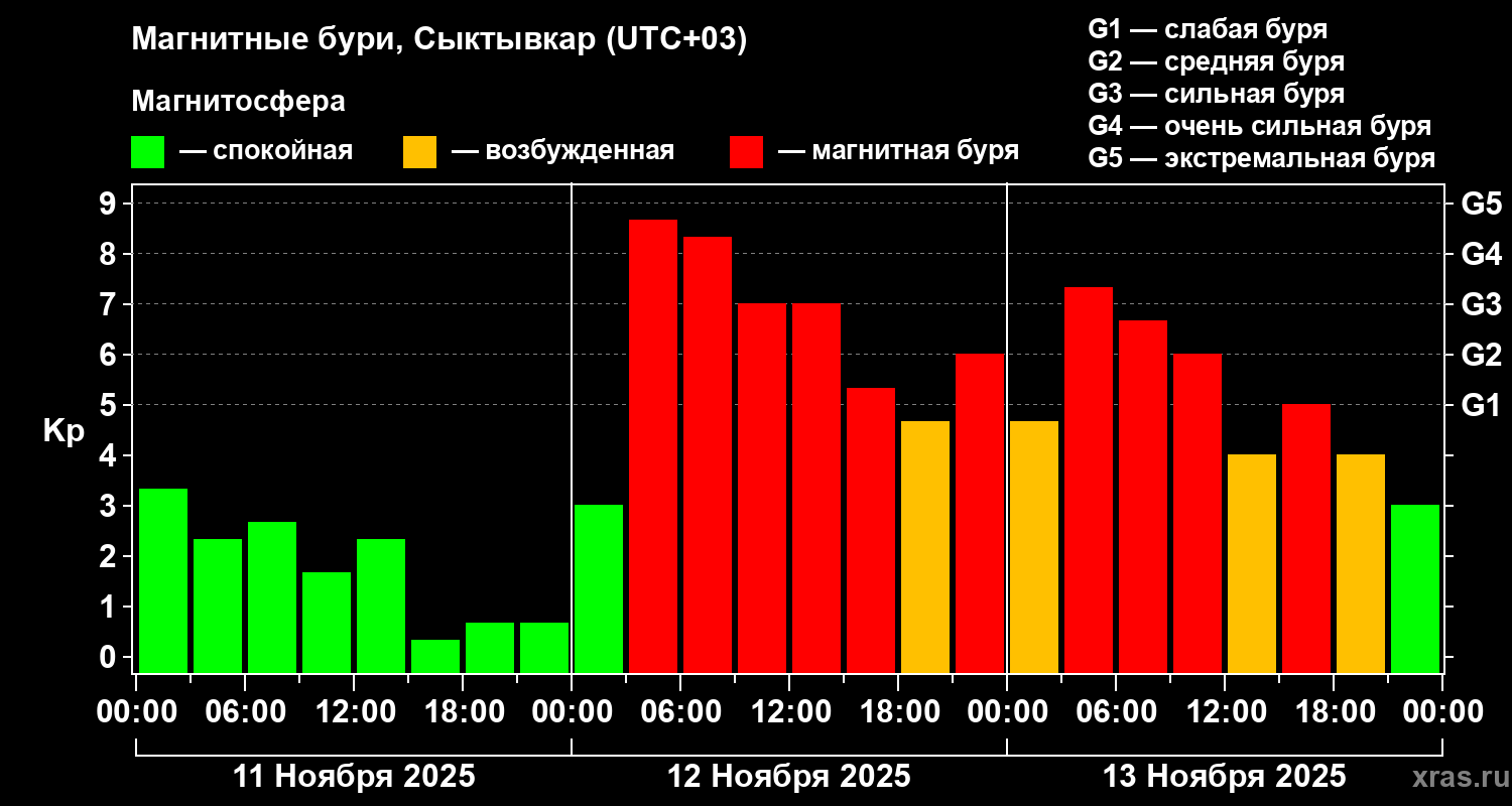 Магнитные бури в Сыктывкаре — 13 ноября 2025 года