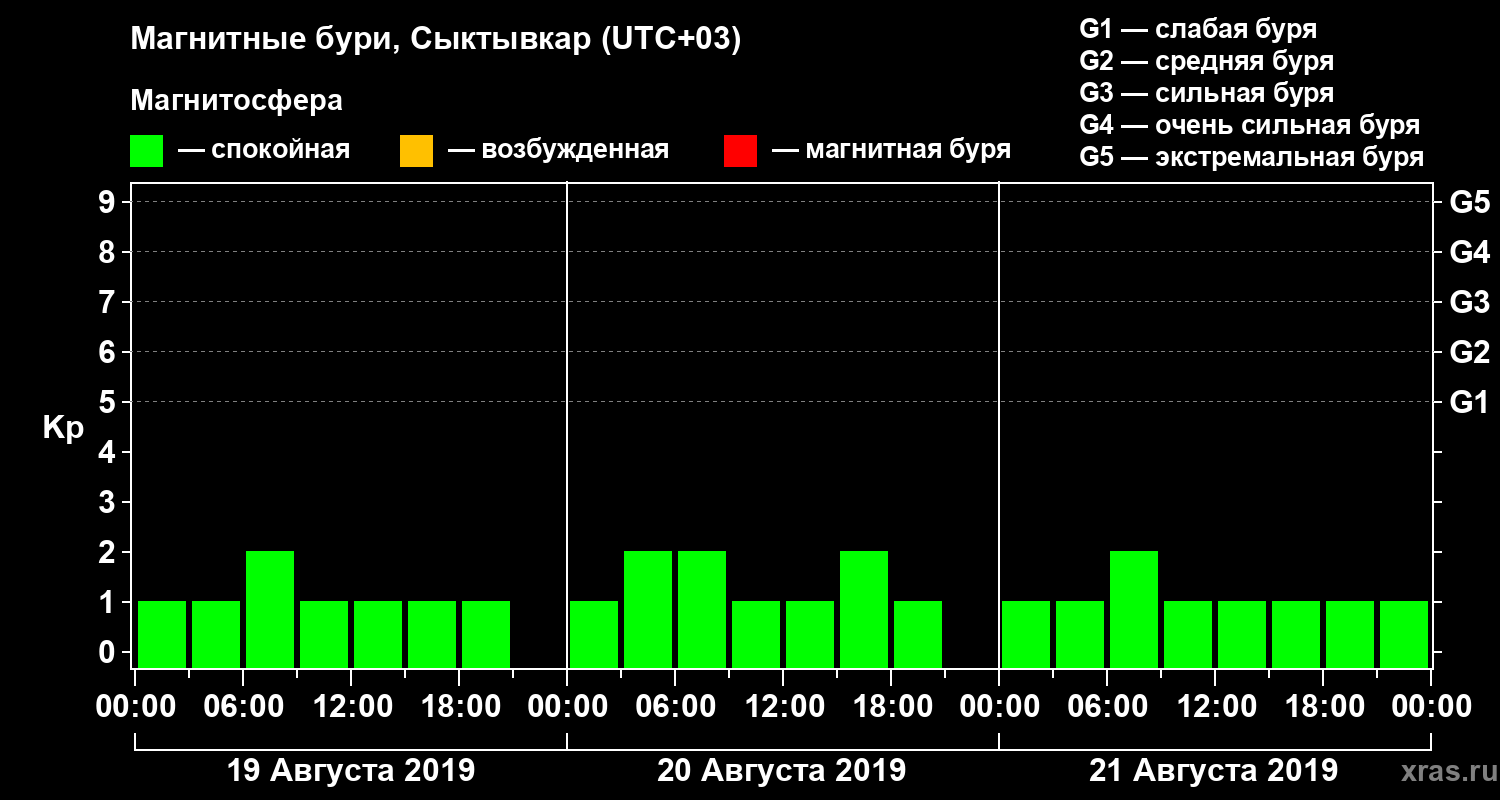 Магнитные бури в Сыктывкаре 21 августа 2019 года