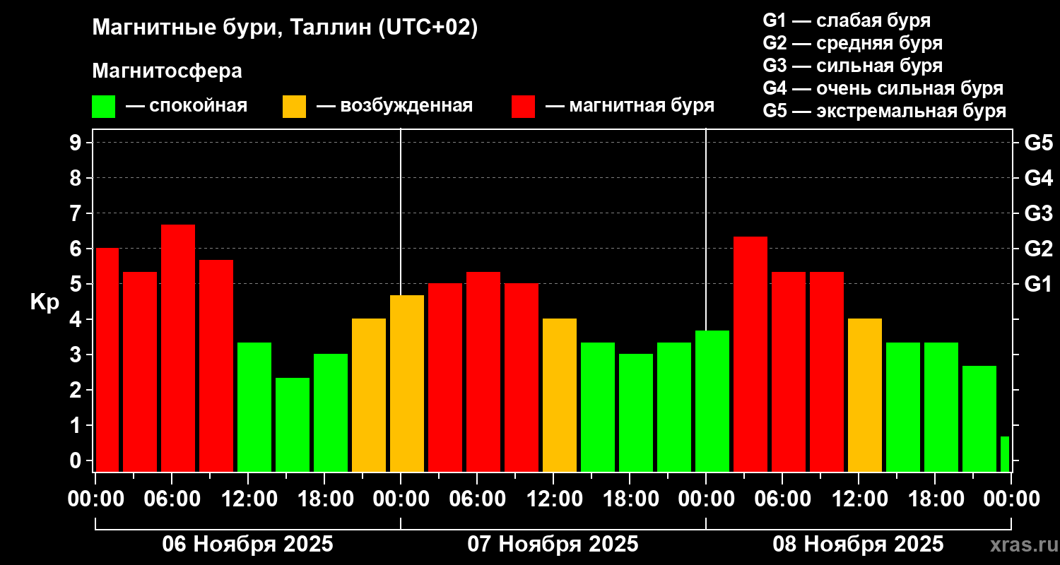 Магнитные бури в Таллине — 8 ноября 2025 года